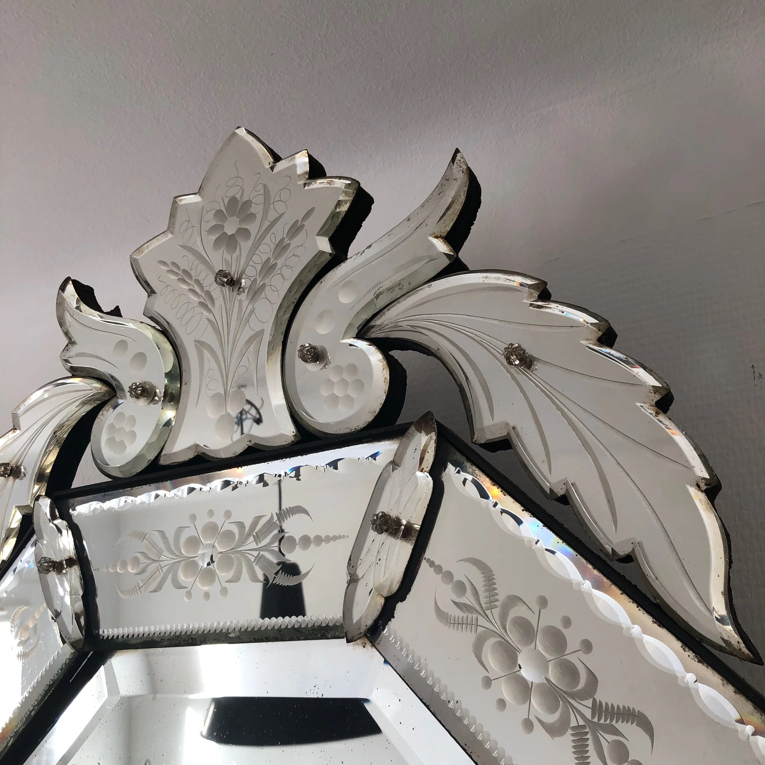 Ancien miroir vénitien Murano circa 1900 dans son jus.