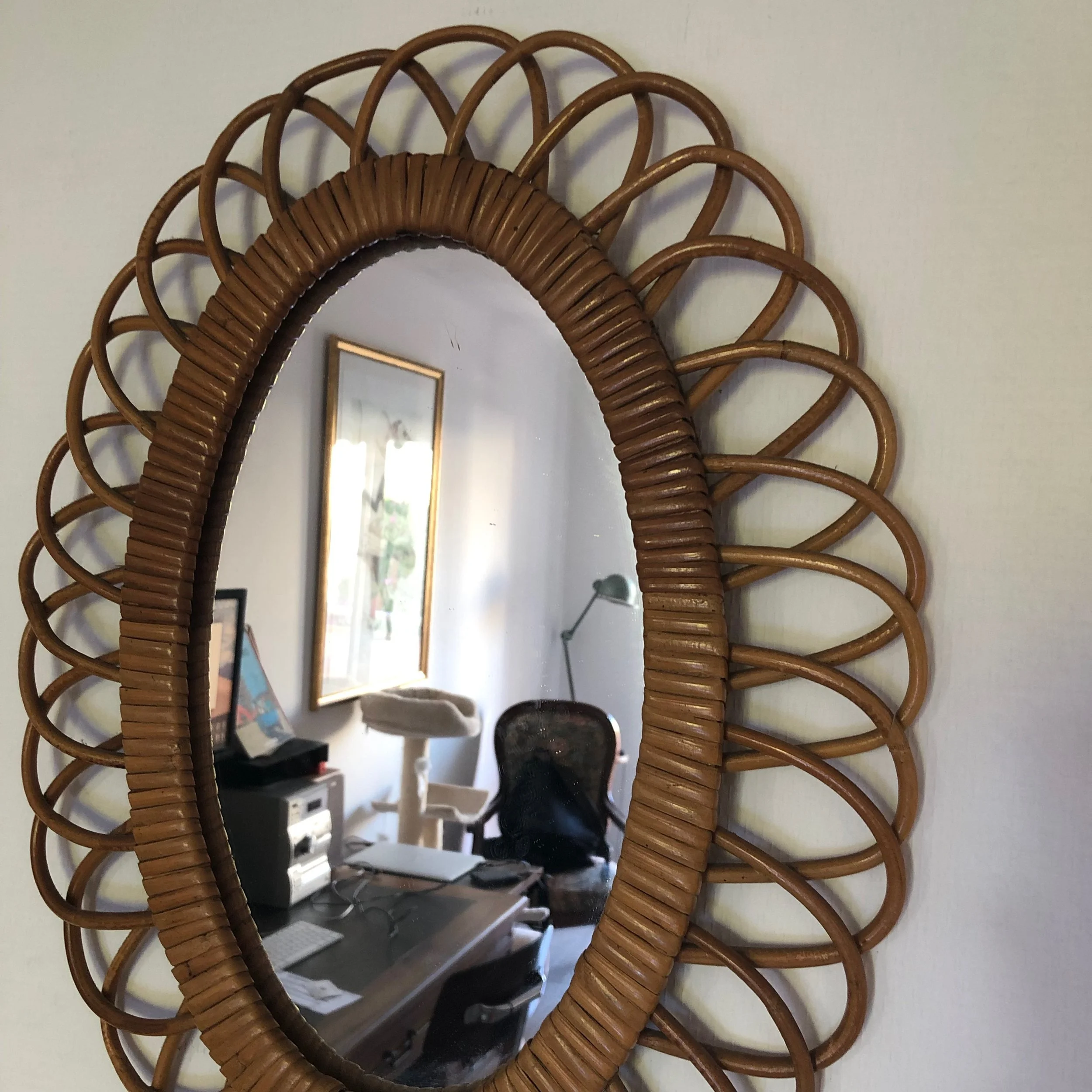 Miroir soleil rotin ovale vintage 1960 52x40cm